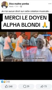 Sur le réseau social Facebook, la vidéo a été publiée par la page Dico Maître Yomba avec la légende « je n’ai aucun droit sur cette création musicale”. On peut lire ce texte mentionné sur la vidéo : « Merci le doyen Alpha Blondy ».