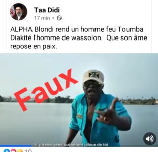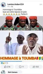 La même chanson a été publiée par Lamine Draba+224 accompagnée de la légende “Hommage à Toumba”.
