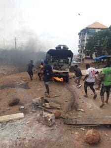 Près d’un an après le putch ayant renversé le Professeur Alpha Condé du pouvoir le 5 septembre 2021,la junte en Guinée dirigée par le colonel Mamadi Doumbouya continue de faire face à des series de protestations à Conakry. Malgré les interdictions de manifester, le front national de la démocratie en compagnie des principales structures composantes des forces vives de la nation dont l’ancien parti au pouvoir RPG Arc En Ciel ont encore appelé à une manifestation le 28 juillet faisant un Bilan de 5 morts dont 3 par balles selon les Initiateurs et Amnesty International. Outre ces cas de morts, de nombreuses arrestations et la vendalisation de plusieurs magasins et boutiques sont enregistrées . C’est le cas dans la commune urbaine de matoto precisement au quartier Enta où à la veille de cette manifestation (Au lendemain de la publication du communiqué relatif à la manifestation par le FNDC ndlr ) ,un centre de prestation et son gerant ont subi les frais . À en croire les temoins,ce centre est soupçonné d’etre l’un des endroits où etaient confectionnés les badges et T shirts ainsi que les depliants à l’effigie du FNDC. Selon les informations reçues sur place, son propriétaire notamment la victime faisait objet de menace depuis quelques semaines et a meme été interpellé et mis en garde à vue à la compagnie mobile d’intervention securitaire(CMIS 4 D’ENTA) pour avoir produit et distribué les flyers vehiculant les annonces et itineraires de l’appel à manifester des forces vives de Guinée contre certaines decisions du CNRD.