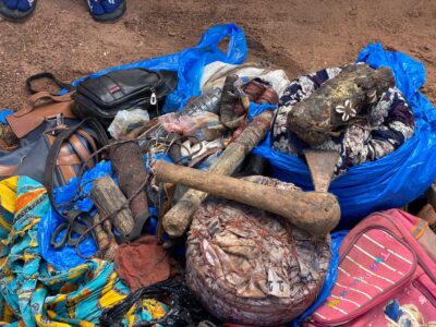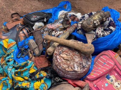 À l’instar des années precedentes,l’Erudit de Guinée Elhadj Cheick Souleymane Sidibé a lancé officiellement ce vendredi 13 septembre la commémoration du Maouloud 2024 (date marquant la naissance du Prophete Mahomet Psl). Pour entamer les cérémonies de cette année, Elhadj Cheick Souleymane Sidibé à travers son association Nourdine Islam a decidé d’incinerer de nombreux fétiches qui selon lui seraient dangereux pour la vie humaine. Parmi ces objets ,figure un pot traditionnel maquillé par des gris gris qui fait office de marmite « noire » deposé il y’a quelques jours par une femme qui affirme avoir tué des membres de sa famille dont son enfant à travers la sorcellerie et la magie noire.