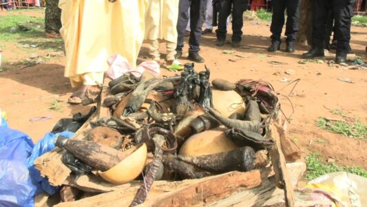 Cet autre dimanche a été aussi caractérisé au temple de nourdine d’Elhaadj Cheick Souleymane Sidibé par l’incinération d’un nombre importants de fétiches. Apportés par leurs propriétaires et héritiers, ces objets qualifiés destructeurs pour l’être humain ont été brulés devant plusieurs curieux venus de partout à travers le pays et certains pays de la sous région dont le mali, la cote d’ivoire et le Sénégal. « Ces fétiches que vous voyez sont très nuisibles. Selon ceux qui nous ont rendu, ils ont détruit beaucoup de vies en tuant les personnes à travers les rituels mystiques.Aujourd’hui devant Dieu et les Hommes je vais les incinérer sans soucis. Si ces fétiches sont capables, qu’ils me fassent du mal aussi au cas contraires ils seront calcinés sans problème » a-t-il déclaré avant de lancer un défi aux féticheurs de diriger leurs objets contre lui en donnant sa filiation.