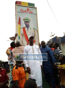 Suite aux incidents ayant conduits à la brûlure du portrait du président de la transition exposé au beau milieu du rond point komarala pendant la récente manifestation de réclamation du courant électrique,les jeunes décident enfin de restaurer l’effigie tout en réaffirmant leur ferme volonté à soutenir le chef de l’État dans son élan de refondation. C’est dans la soirée de ce mercredi 29 mars qu’ils ont érigé à nouveau les portraits du Président de la transition à cet endroit de la commune urbaine . C’était en présence des autorités administratives de la ville dont le Maire et le Gouverneur ainsi que les forces de sécurité sous les regards de plusieurs dizaines de citoyens venus presque de partout à travers la ville. Pour Moussa Kaba l’un des jeunes initiateurs également jeune Leader de la ville membre de la structure juvénile »Grain môgnoumayiri de kabada », l’initiative s’inscrit dans l’optique d’adresser les méa_culpas au Chef suprême des armées guinéennes.