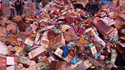 Ce jeudi, 22 janvier, la direction préfectorale du commerce de Kouroussa a procédé à la destruction des produits impropres à la consommation. Une initiative qui selon les responsables, visent à assainir les différents marchés de la ville en terme de consommation et vente des produits destinés à la consommation. Au total, plus de 3 tonnes de produits jugés impropres ont été incinérés. Selon le premier responsable de ladite direction, ces produits ont été saisis dans des marchés de la préfecture. « Entre la période du 1er janvier au 31 décembre 2025, nous avons sillonné des marchés, magasins et boutiques de la commune urbaine ainsi que ceux des 6 sous-préfectures qui composent la préfecture de Kouroussa. Après contrôle, il s’est avéré que 3 tonnes et 92 kilogrammes de produits sont impropres à la consommation. D’où l’initiative de leur ’incinération aujourd’hui », a laissé entendre Abdoulaye Bayo.